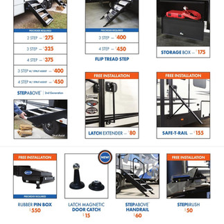 For large items Rubber Pin Box, Gooseteck, Cargo Slides, Entry Door Steps, etc., you must call to pre-order those.